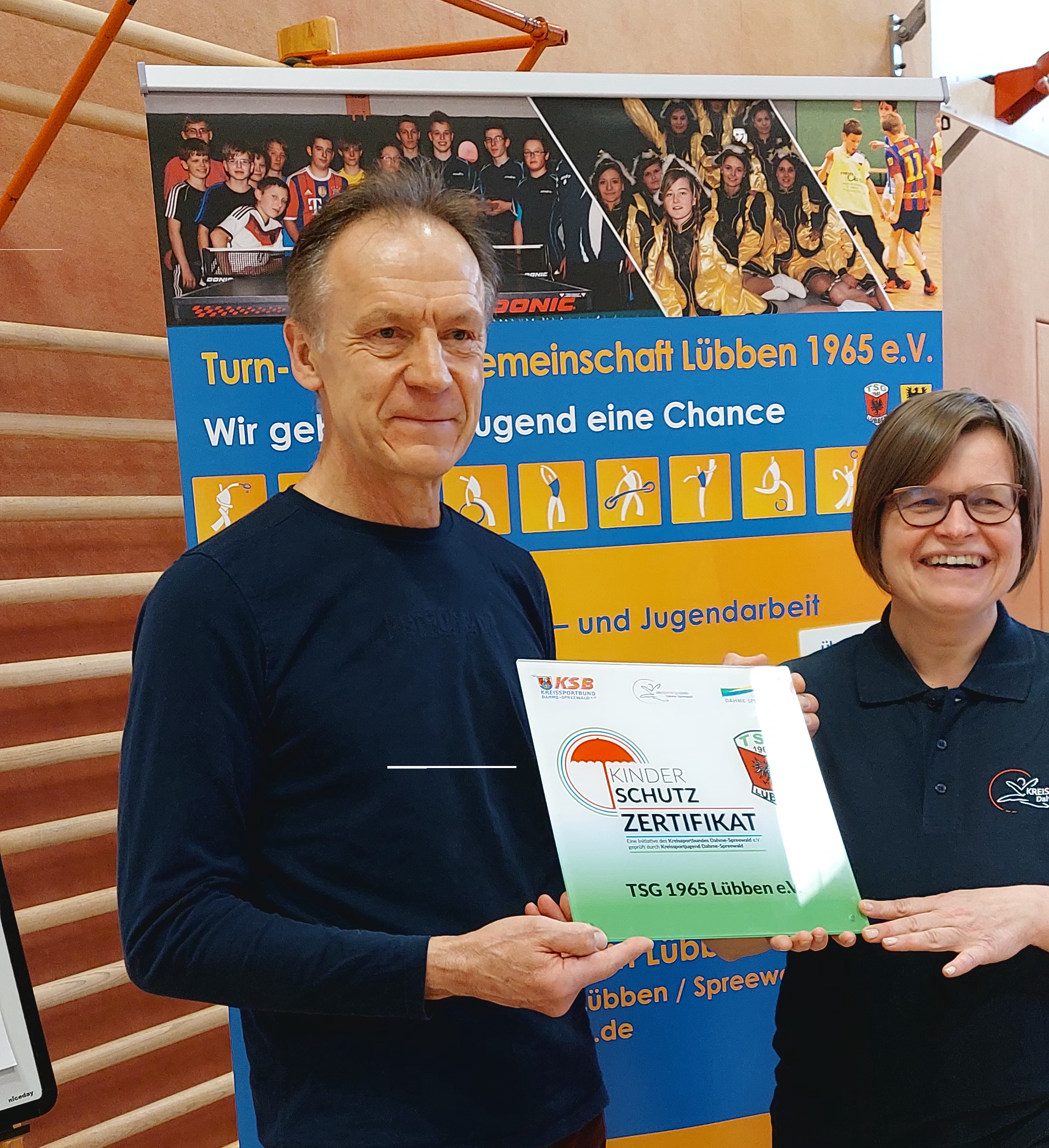 Die Turn- und Sportgemeinschaft 1965 Lübben e.V. erhält das erste Gütesiegel „Kinderschutz im Sportverein im LDS“. Zur Mitgliederversammlung des Vereins am 12.04.2023, überreichten die Vorsitzende